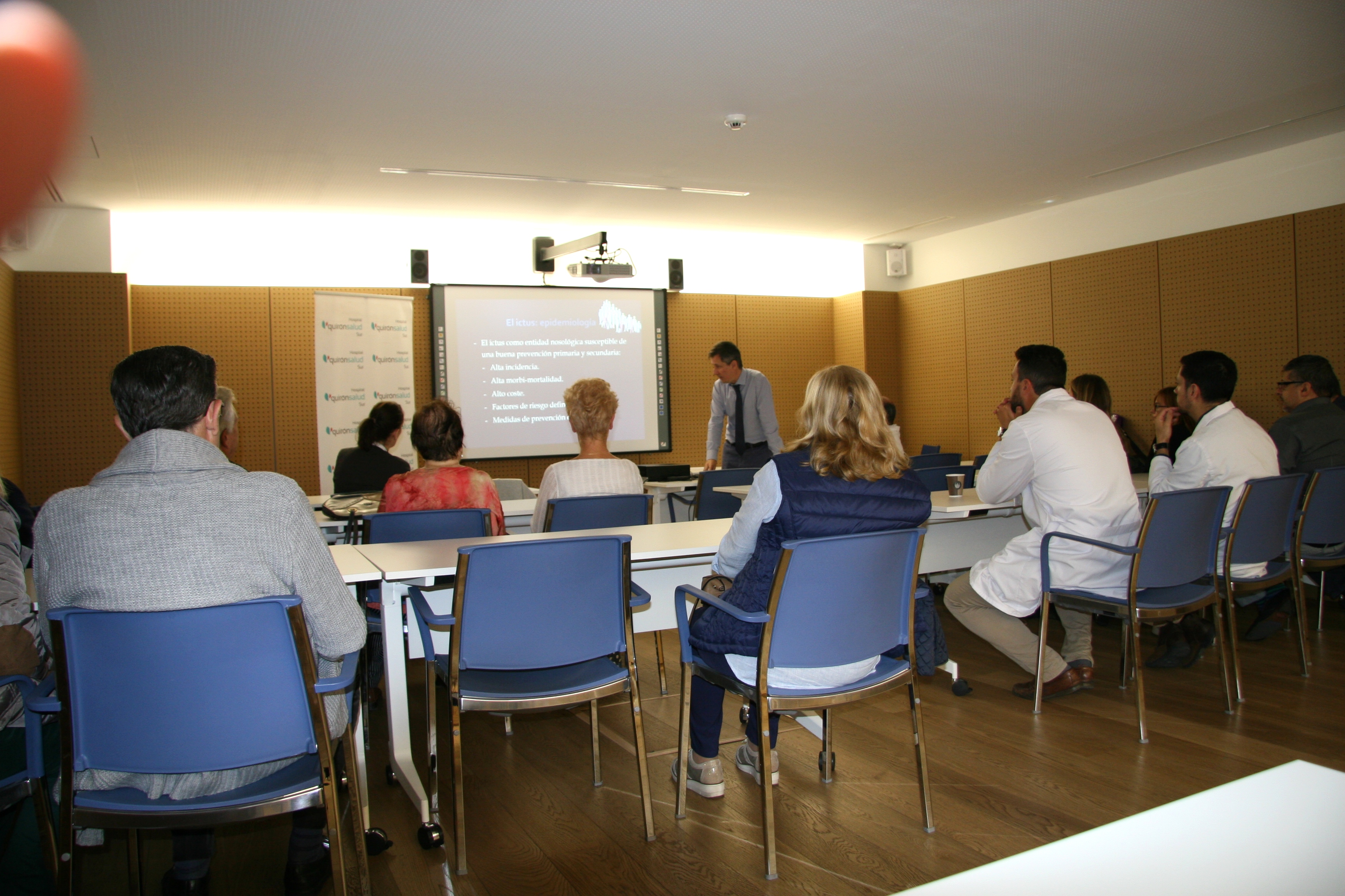 Por su parte, el Dr. Joaquín Carneado Ruiz, Jefe de Servicio de Neurología, ofrecía la visión del neurólogo, destacando los principales factores de riesgo a la hora de sufrir un ictus -hipertensión, fibrilación auricular, diabetes, sedentarismo y consumo de tabaco-, responsables de las 2/3 partes de los ictus que se producen entre la población.