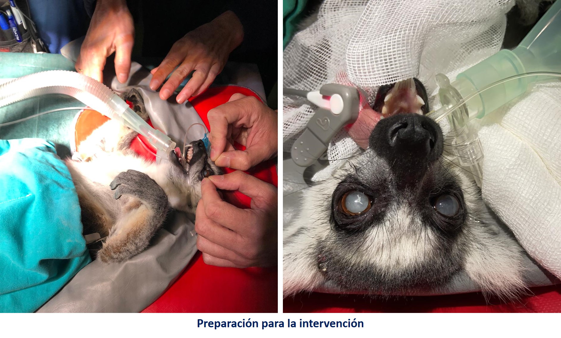 Cuando los oftalmólogos veterinarios diagnosticaron de cataratas al lémur, expresaron sus dificultades técnicas para realizar la intervención y plantearon la posibilidad de realizar una cirugía conjunta con oftalmólogos más habituados a realizar microcirugías de este calibre en seres humanos, motivo por el cual los cuidadores de Faunia se pusieron en contacto con nuestro servicio: "En cuanto conocimos el caso, contactamos con los oftalmólogos veterinarios de la UCM para acordar los detalles de la cirugía", dice el Dr. San Román.