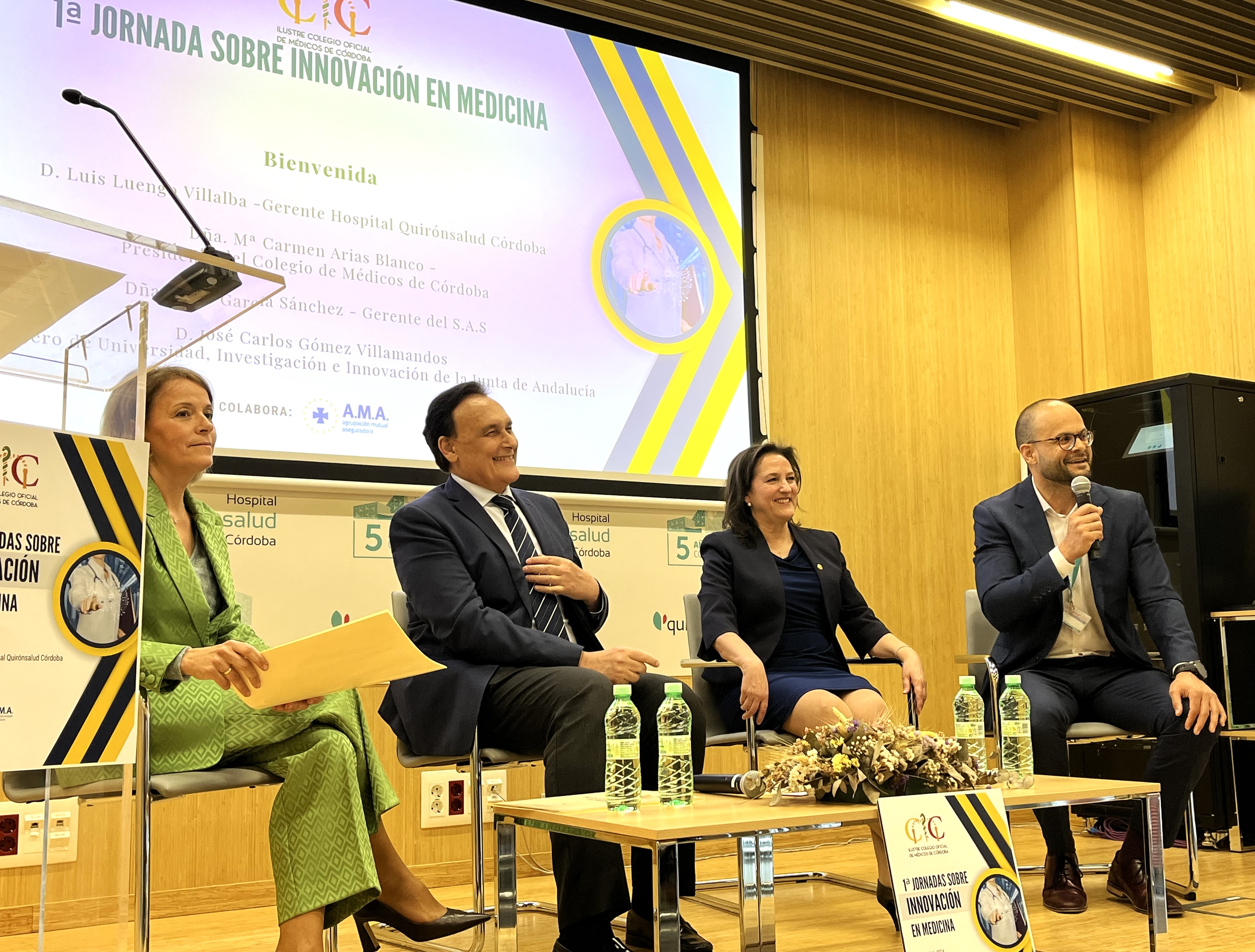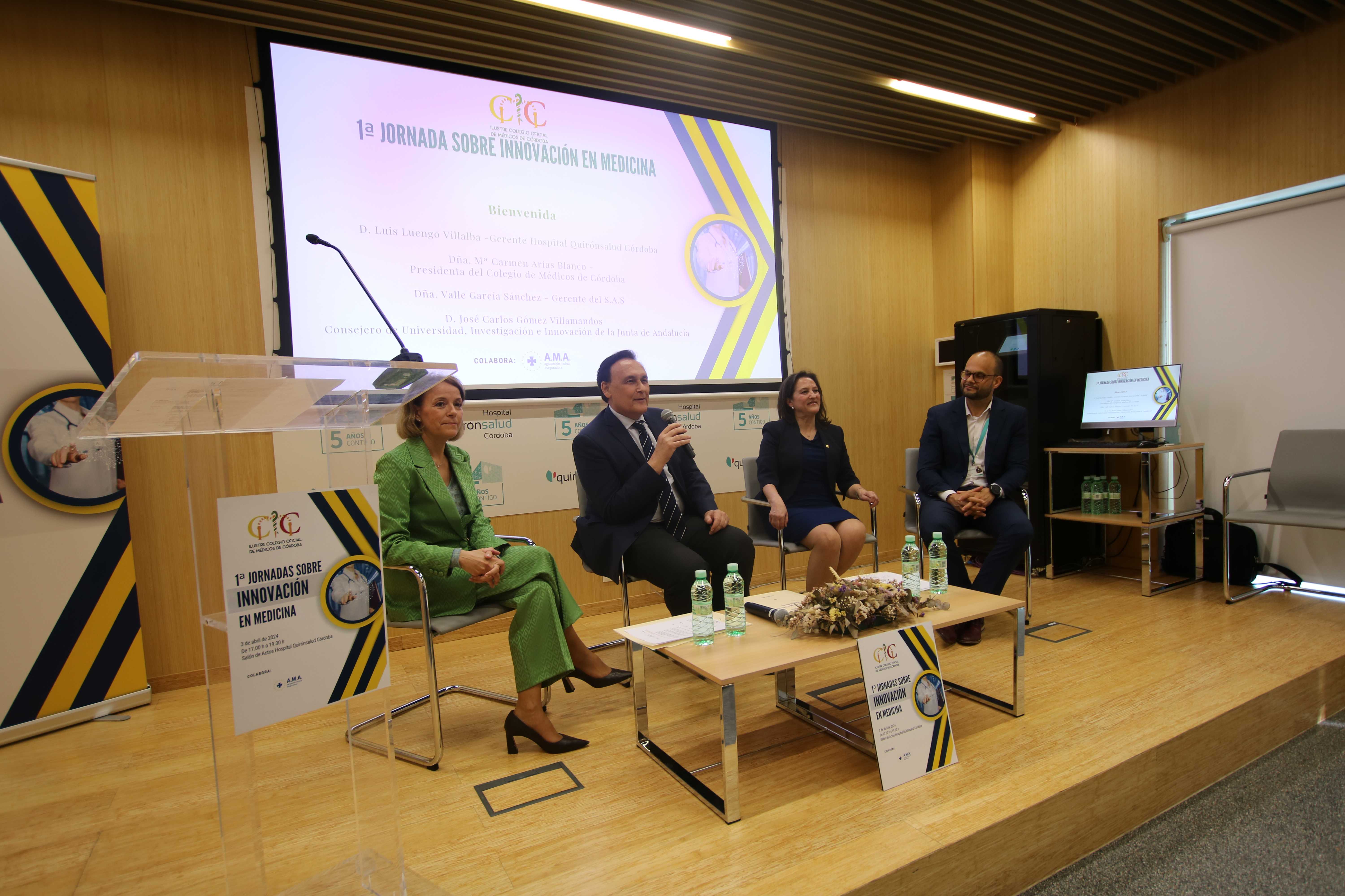 El acto dio comienzo con la bienvenida de Luis Luengo, Gerente del Hospital Quirónsalud Córdoba, y la presentación de la jornada por parte de la Dra. Mª Carmen Arias Blanco, presidenta del Colegio de Médicos de Córdoba, con la participación de la Dra. Valle García Sánchez, gerente del Servicio Andaluz de Salud y José Carlos Gómez Villamandos, consejero de Universidad, Investigación e Innovación de la Junta de Andalucía.