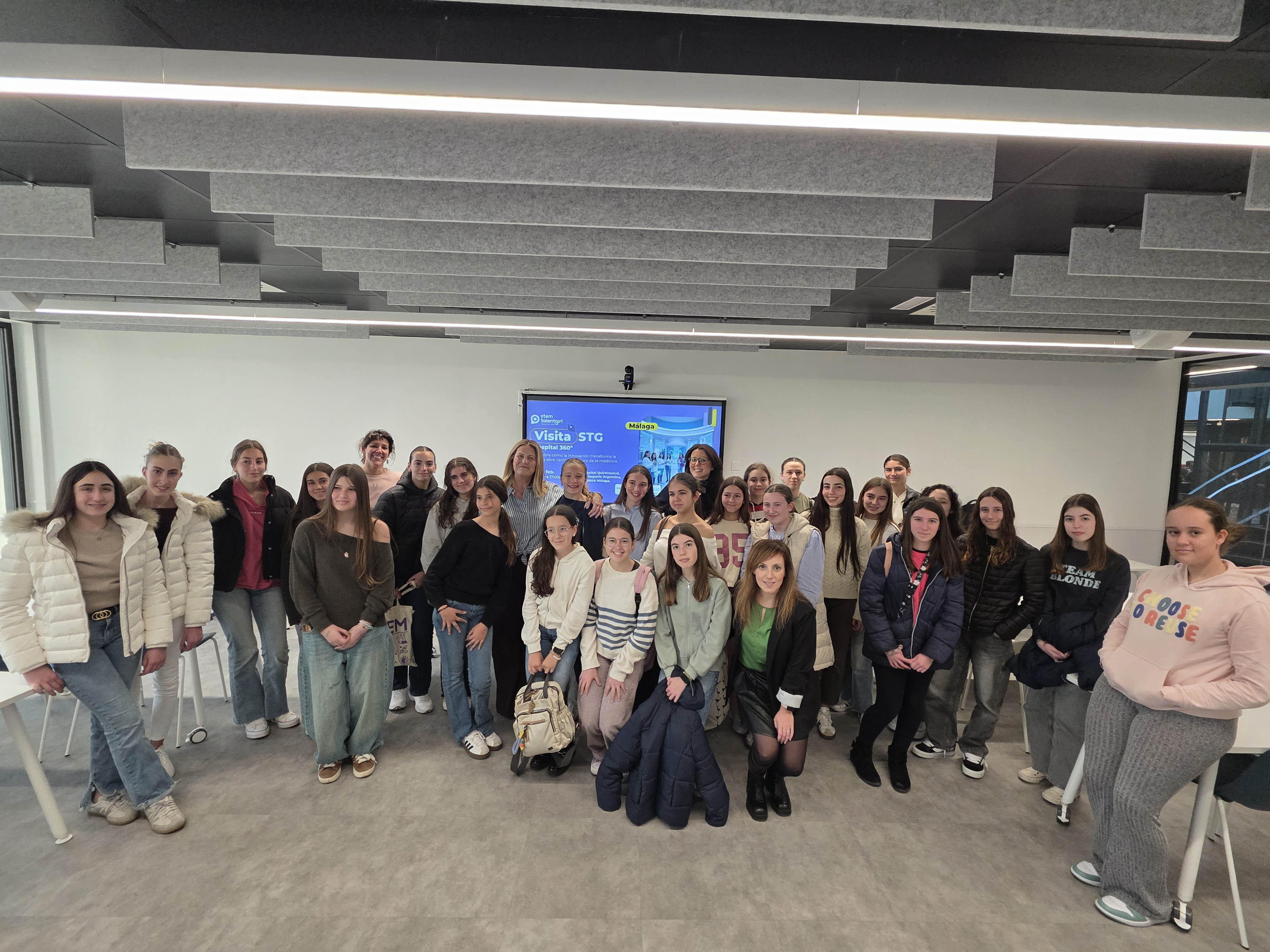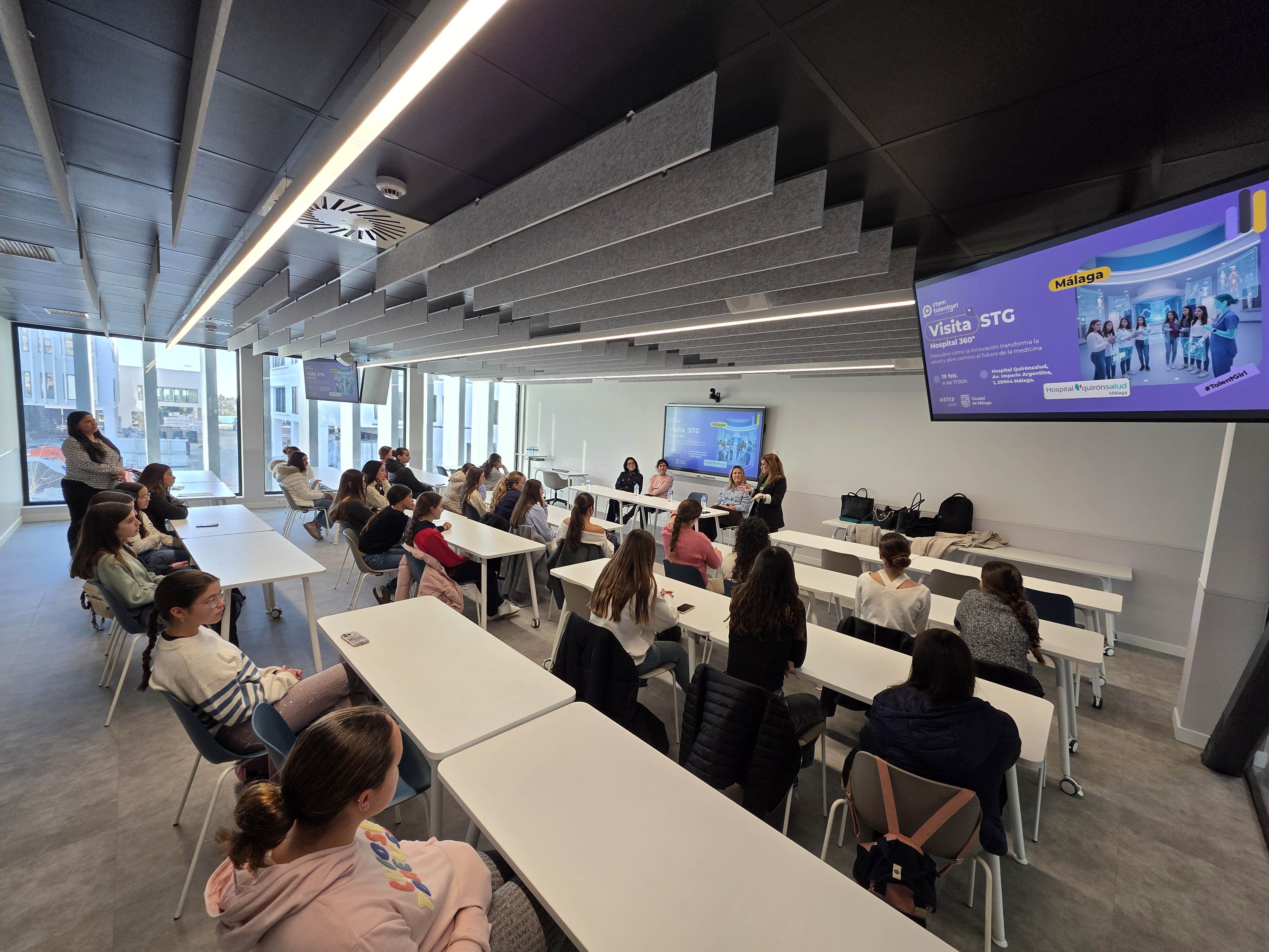 El Hospital Quirónsalud Málaga ha recibido la tarde del jueves 19 de febrero la visita de medio centenar de alumnas de 18 institutos de la provincia dentro del programa STEM Talent Girl de la Fundación ASTI junto con el Ayuntamiento de Málaga.