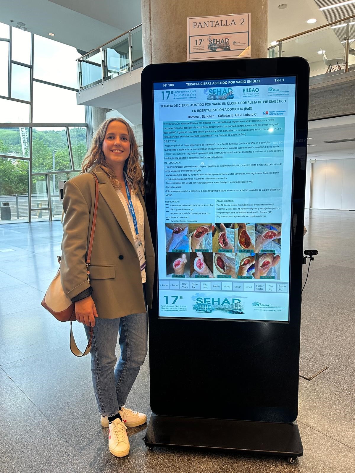 La participación de la unidad en el congreso de la SEHD incluyó también un segundo póster sobre la evolución de la herida quirúrgica de un paciente de cirugía vascular que estuvo hospitalizado durante 52 días en este servicio, precisando de curas a través de un sistema de cierre asistido por vacío.