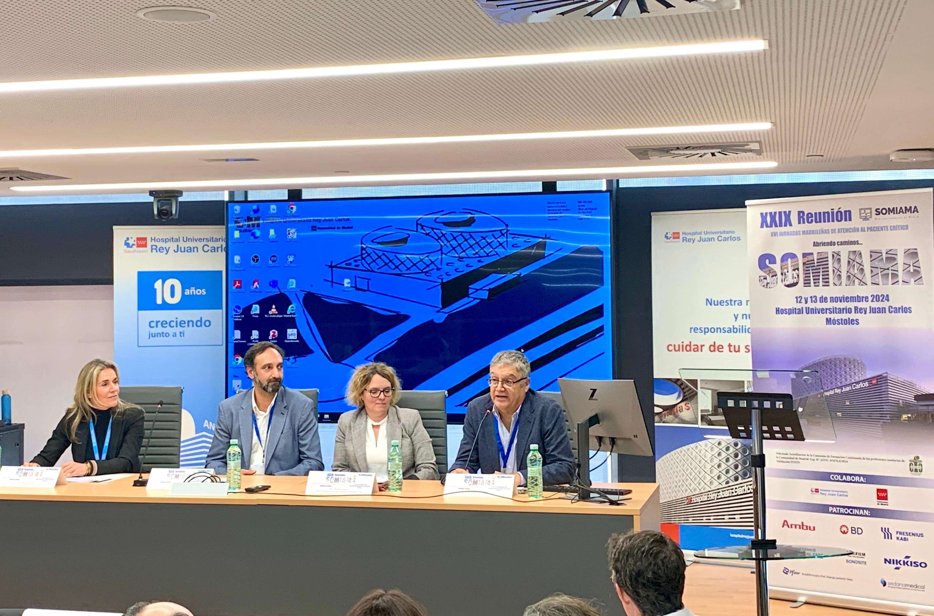 La inauguración de la reunión fue presidida por la Dra. Almudena Quintana, directora general asistencial del Servicio Madrileño de Salud; el Dr. Daniel Ballesteros Ortega, presidente de SOMIAMA; Dña. Marta García Camí, directora gerente del Rey Juan Carlos, y el Dr. Manuel Pérez Márquez, jefe de la UCI del centro. Durante el acto, la Dra. Quintana destacó el relevante papel de los especialistas en Medicina Intensiva, especialmente durante los años recientes: "La labor que desarrolláis es esencial, y vuestra especialización asegura que los pacientes críticos reciban una atención de máxima calidad en momentos decisivos", subrayó, añadiendo la importancia de integrar la inteligencia artificial para optimizar la precisión y rapidez diagnóstica.