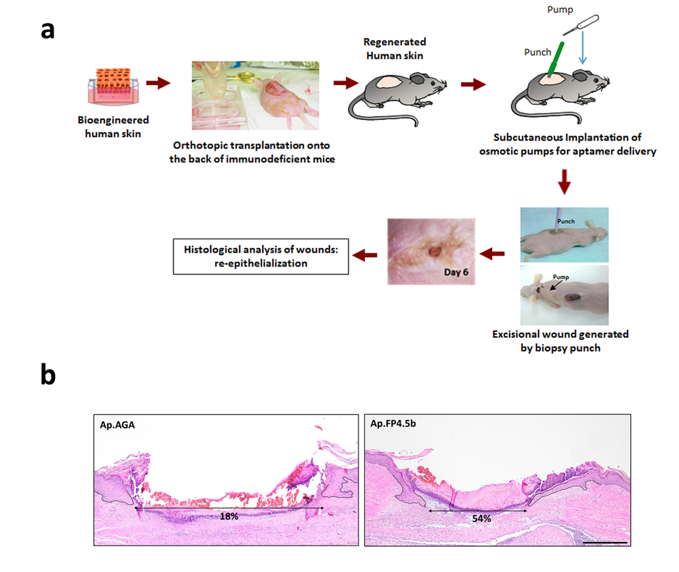 En este trabajo, publicado recientemente en la revista científica más importante del mundo en Dermatología, Journal of Investigative Dermatology, los investigadores han diseñado y generado con éxito, por primera vez, aptámeros oligonucleótidos de ADN, con una alta afinidad y especificidad por el receptor FPR2 (del inglés formyl peptide receptor 2). "La activación de dicho receptor ha sido capaz de desencadenar eficazmente el proceso de reparación de heridas en un modelo experimental humanizado", explica la autora principal del trabajo, la Dra. Marta Carretero, investigadora del CIEMAT en el marco de esta cátedra.