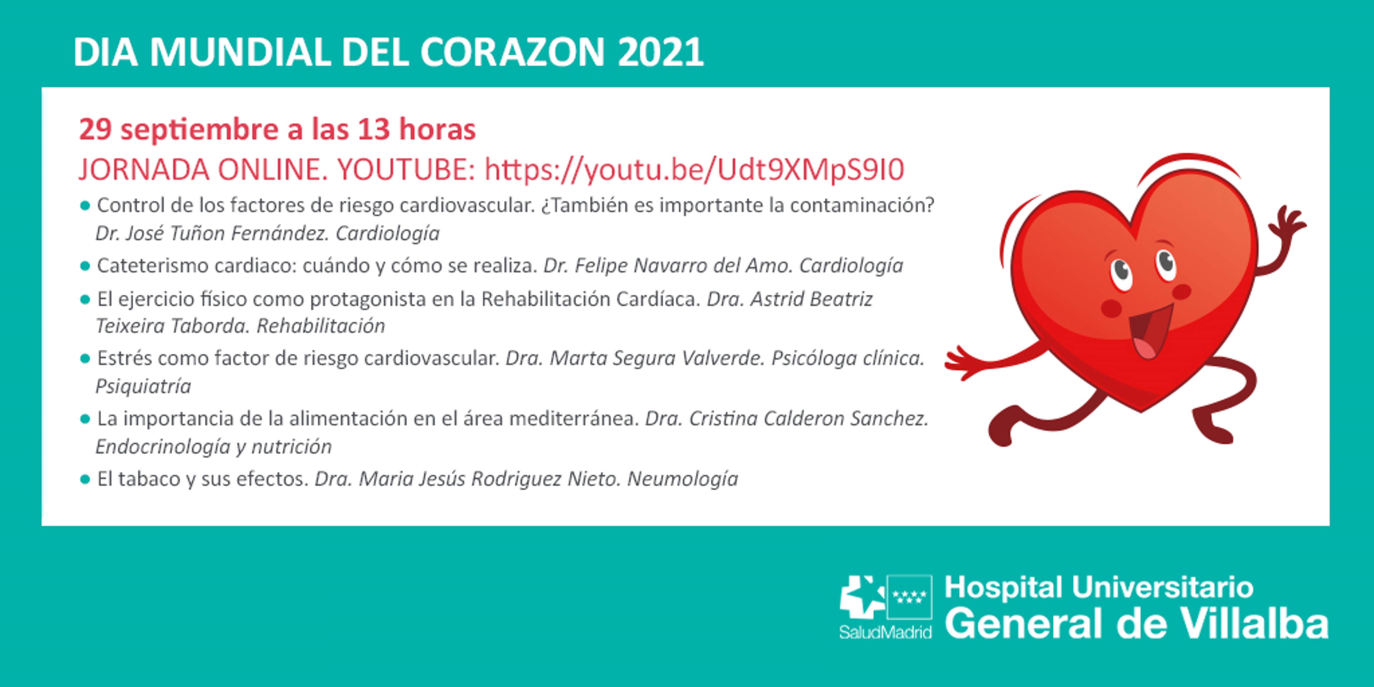 este miércoles, coincidiendo con el Día Mundial del Corazón, para concienciar a la población de los factores de riesgo, y recordarles la importancia de controlarlos. Asimismo, de la mano del Dr. Felipe Navarro, jefe del Servicio de Cardiología del centro, los seguidores del encuentro virtual conocieron el abanico de tratamientos para abordar estas patologías que existe en la actualidad y que ofrece el hospital, como el cateterismo cardiaco.