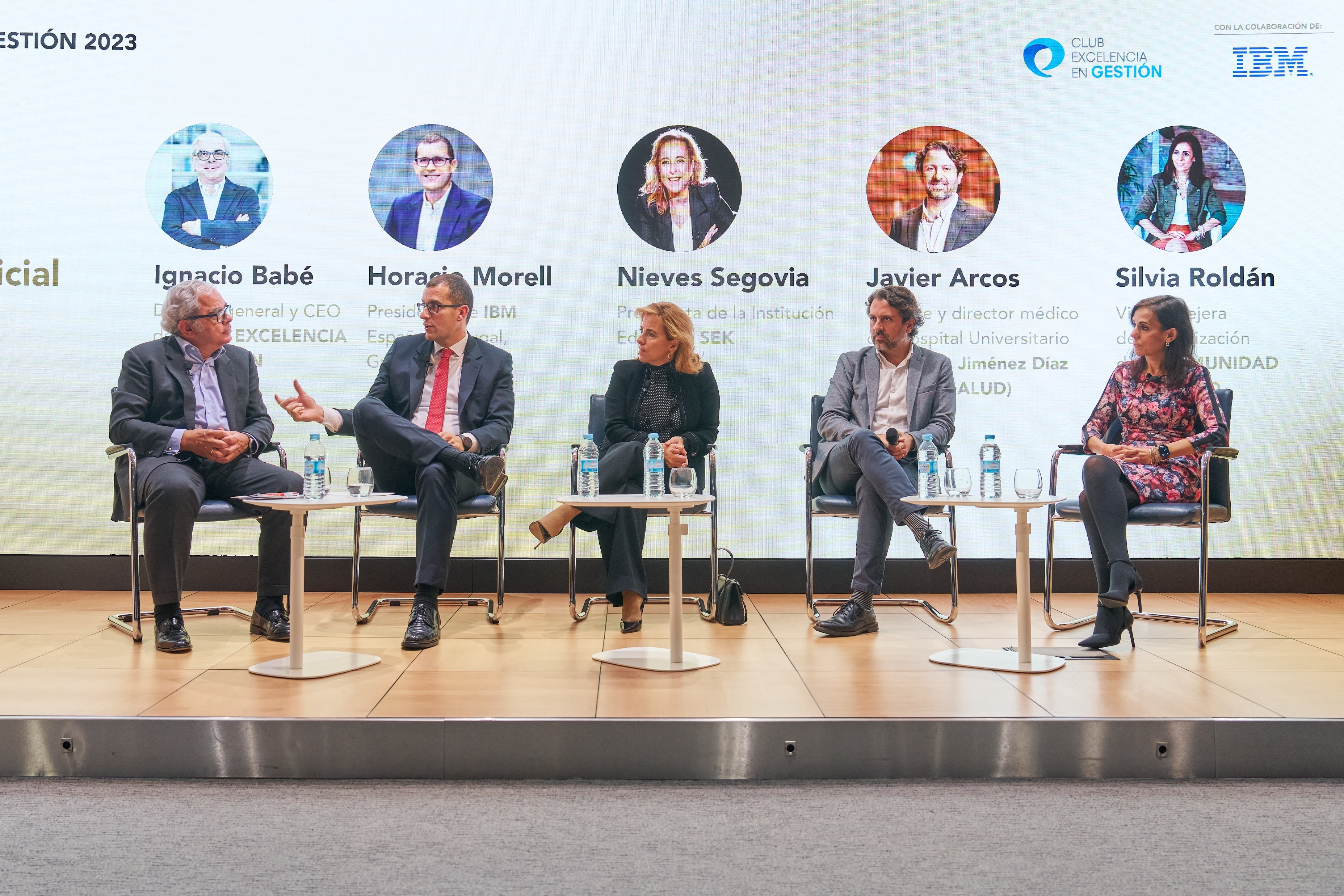 Todo un reto, el de la transformación digital de los sistemas sanitarios, que el Dr. Arcos completó con una reflexión sobre el impacto de la inteligencia artificial en la gestión sanitaria, y que también expuso en la entrega de los Premio Anuales de Gestión 2023: Excelencia e IA, organizada por el Club de Excelencia en Gestión en el IBM Innovation Studio, donde destacó el papel crucial de esta disciplina científica en el sector sanitario.