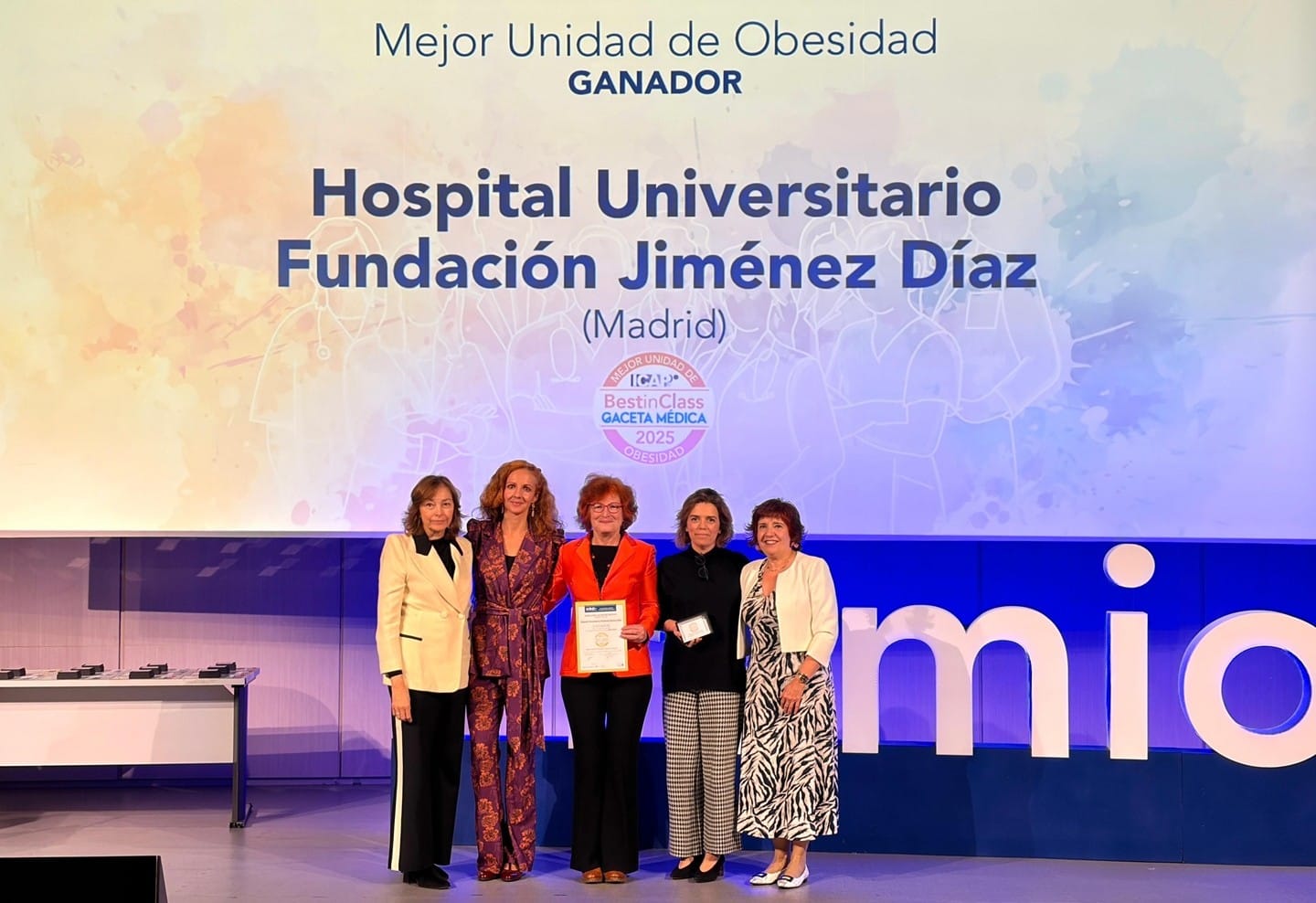 También fue la jefa del Departamento de Endocrinología y Nutrición de la Fundación Jiménez Díaz la responsable de recoger el Best in Class en la categoría de "Obesidad", en este caso, junto a Alicia Melchor, enfermera y nutricionista de este servicio en el hospital madrileño y responsable de todas las sesiones grupales con los pacientes, y la Dra. Teresa Montoya, jefa del correspondiente servicio en el Hospital Universitario Infanta Elena y, en palabras de la Dra. Vázquez, segunda "alma" de la Unidad de Obesidad.