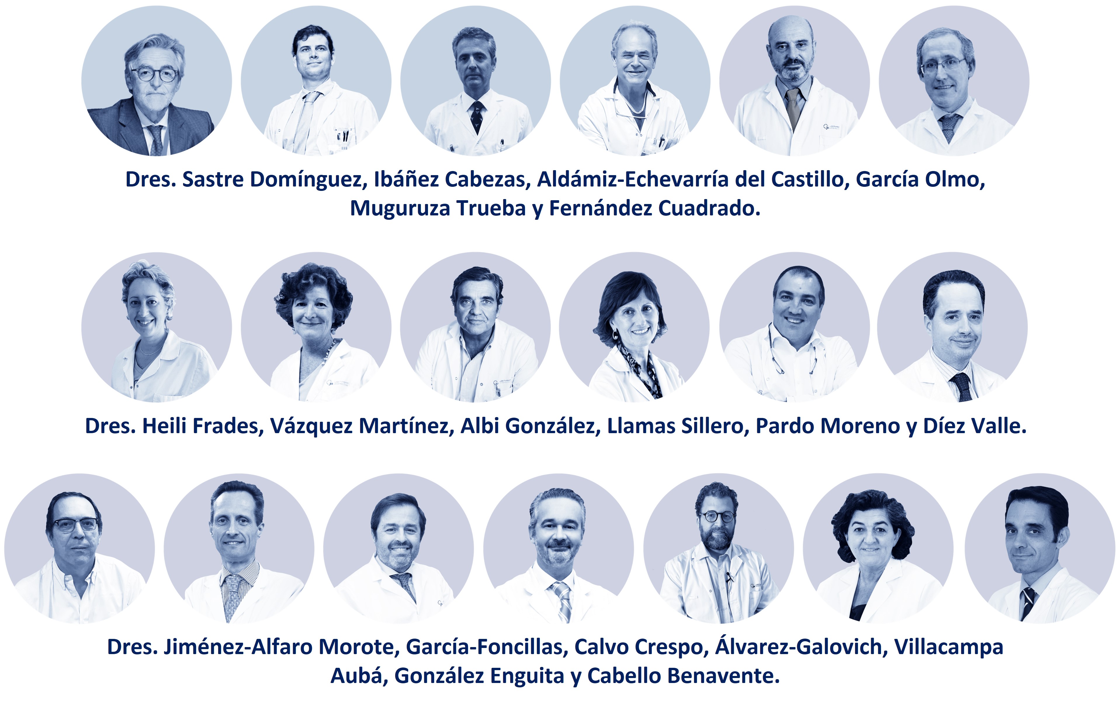- La publicación destaca a los doctores Sastre Domínguez, Ibáñez Cabezas, Aldámiz-Echevarría del Castillo, García Olmo, Muguruza Trueba, Fernández Cuadrado, Heili Frades, Vázquez Martínez, Albi González, Llamas Sillero, Pardo Moreno, Díez Valle, Jiménez-Alfaro Morote, García-Foncillas, Calvo Crespo, Álvarez-Galovich, Villacampa Aubá, González Enguita y Cabello Benavente entre los nombres más importantes de 26 especialidades, reconocidos a nivel nacional e internacional por la excelencia en el desarrollo de su actividad asistencial, clínica, investigadora, divulgadora y docente