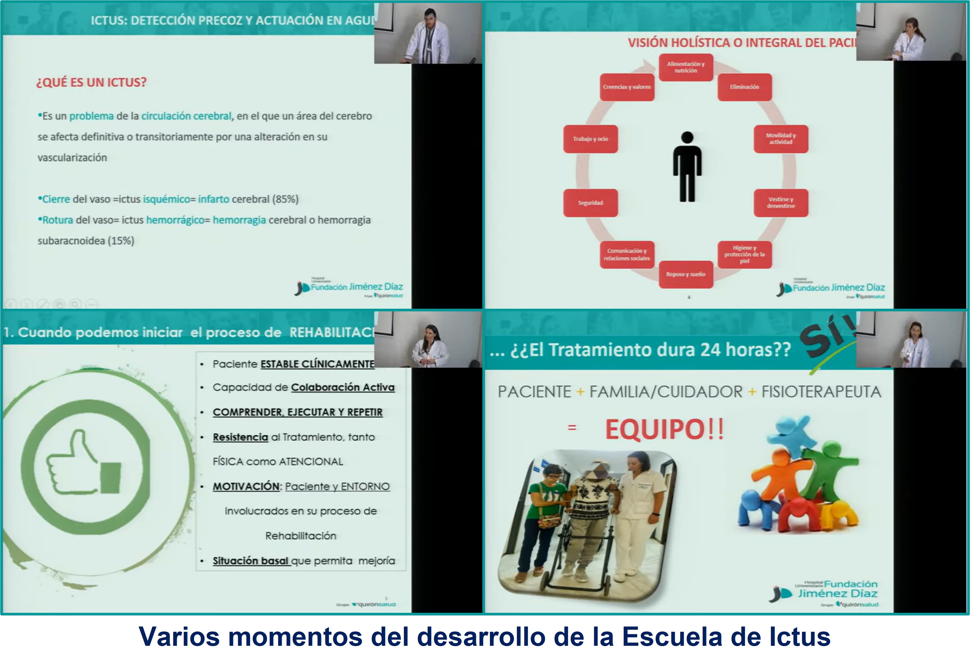 La Fundación Jiménez Díaz ha celebrado recientemente una nueva edición de su "Escuela de Ictus", en esta ocasión bajo el título "Aprendiendo a ser tú", con el objetivo de informar a pacientes y familiares sobre este cuadro clínico y sus distintas fases, así como el manejo de sus secuelas, ya que, según el Dr. Daniel López de Mota Sánchez, especialista del Servicio de Neurología del hospital madrileño, "un mejor conocimiento de este evento cerebrovascular en la sociedad conducirá a reducir su gran impacto". "Si el paciente y los familiares conocen mejor los síntomas, el manejo y el funcionamiento del proceso, podrán participar de forma activa en éste, mejorando su prevención y, en caso de haberse producido ya, su evolución", apunta.
