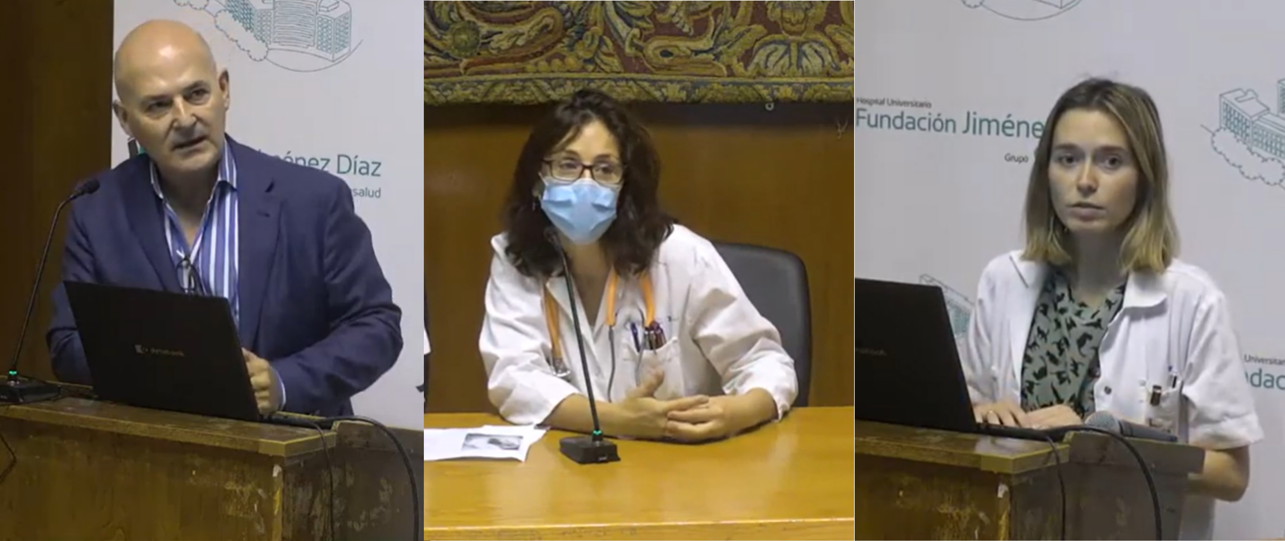 En la sesión, la Dra. Marta García Salmones Fragoso, geriatra de la Fundación Jiménez Díaz, explicó los distintos recursos asistenciales con los que cuenta el centro para atender a los pacientes en las distintas fases de su enfermedad, y que incluyen tanto servicios presenciales, como la atención en Urgencias y el ingreso hospitalario, como no presenciales, para "favorecer la continuidad asistencial y la comunicación con los médicos de las residencias".