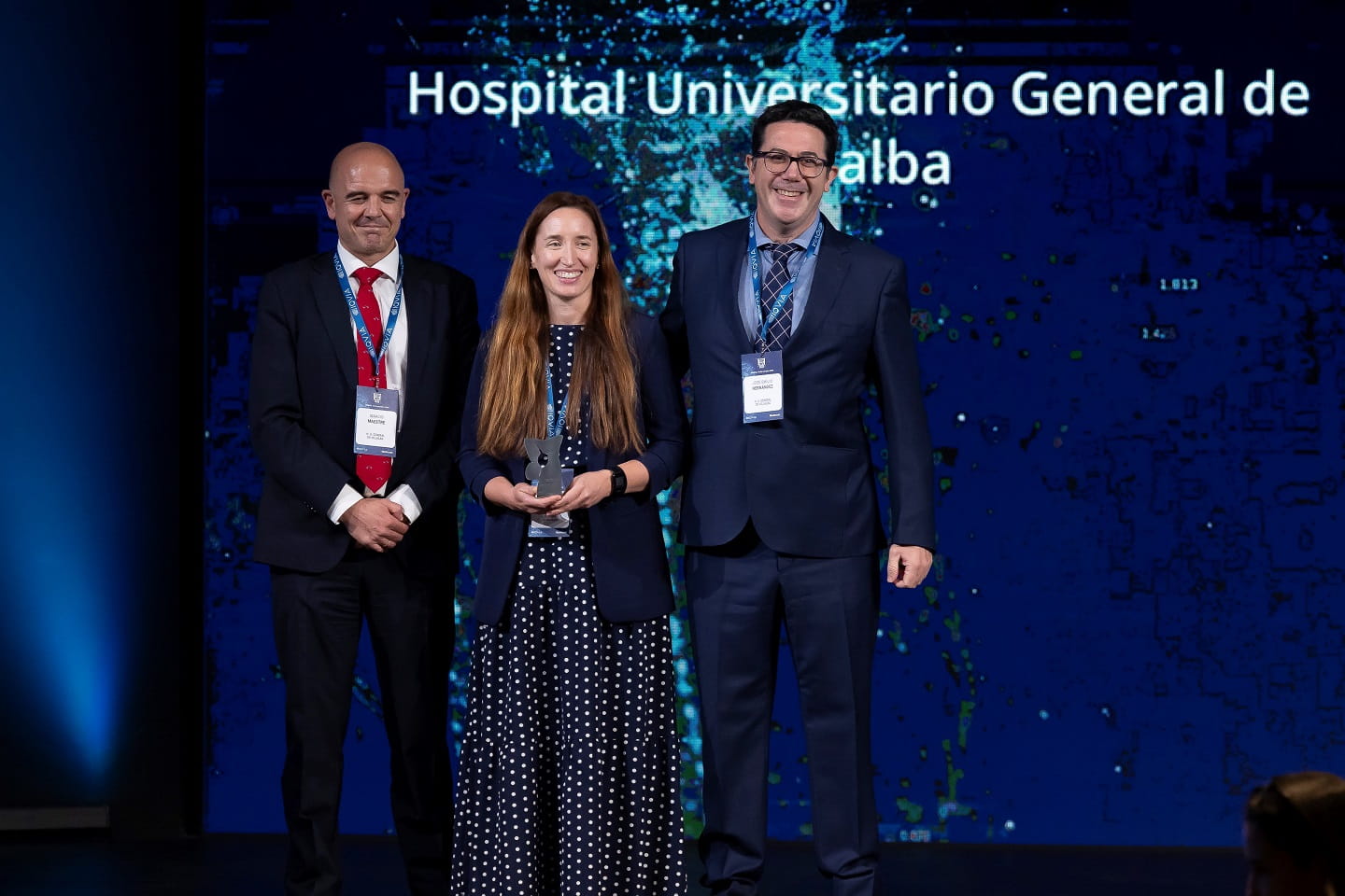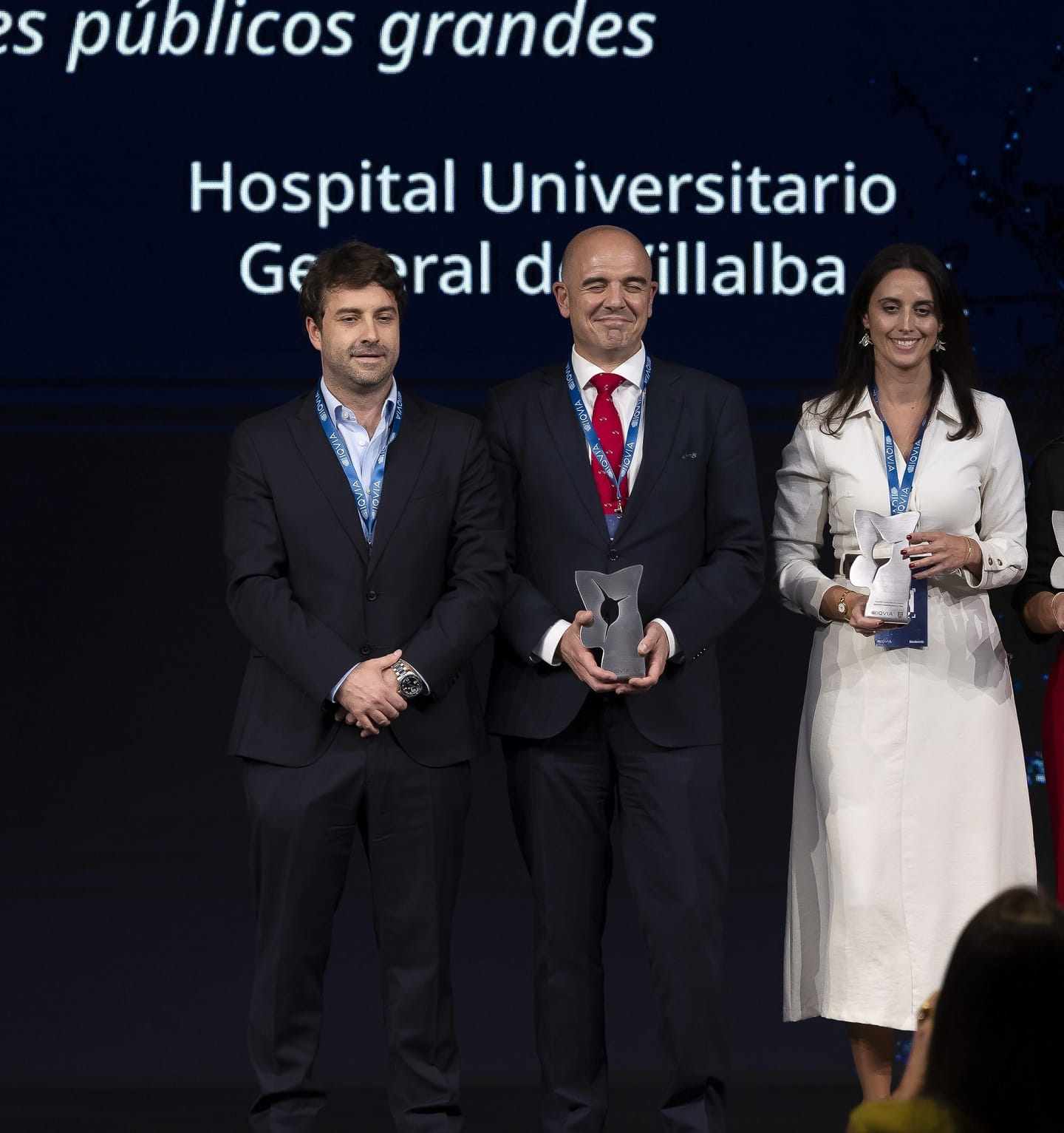 Entre los reconocimientos otorgados al General de Villalba, destaca el Premio Top 20 en la categoría de "Gestión Hospitalaria Global", dentro del grupo de "Hospitales públicos grandes", que recogieron Marta del Olmo, gerente territorial del hospital; el Dr. Jorge Short, gerente territorial adjunto; y el Dr. Ignacio Maestre, gerente.