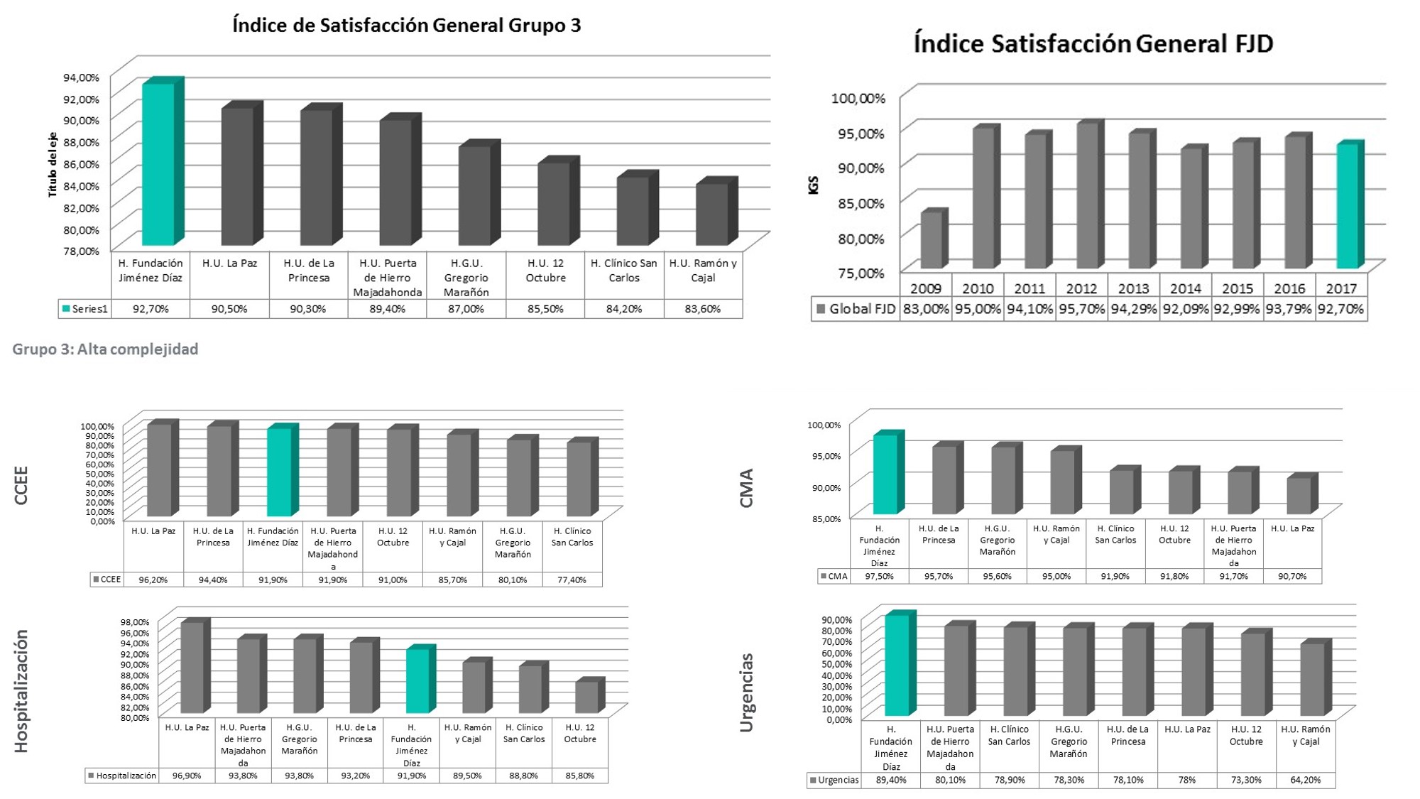 El Hospital Universitario Fundación Jiménez Díaz lidera un año más el ranking de hospitales de alta complejidad de Madrid con mayor índice de satisfacción global
