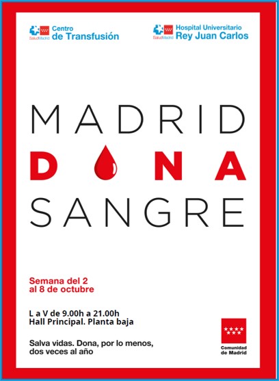 , integrado en la red pública madrileña (Sermas), se suma, una vez más, al Maratón simultáneo de donación "Madrid Dona Sangre", que convoca y coordina esta semana el Centro de Transfusión de la Comunidad de Madrid con un mensaje directo para la población: "Salva vidas. Dona, por lo menos, dos veces al año". Esta iniciativa, que arranca hoy, 2 de octubre, y se extenderá hasta el domingo día 8, tiene como objetivo reforzar las reservas de sangre de la región, que se han reducido tras el periodo estival, para hacer frente a las necesidades hospitalarias de las próximas semanas y meses.