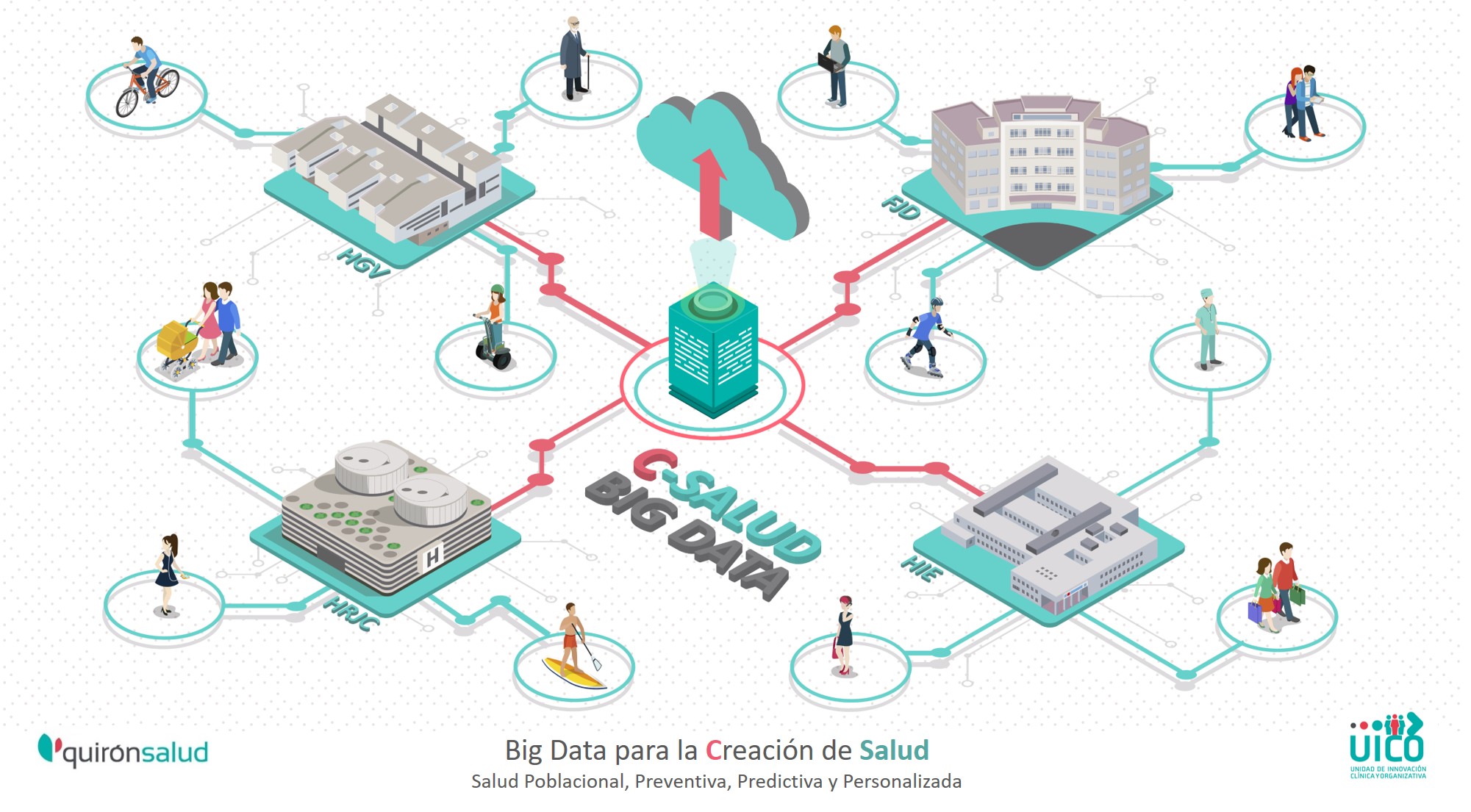 Los Hospitales Públicos gestionados por Quirónsalud en la Comunidad de Madrid acaban de lanzar "C-Salud", un ambicioso proyecto de aplicación del Biga Data para la creación de Salud poblacional, coordinado por la Unidad de Innovación Clínica y Organizativa (UICO) de esta red asistencial -formada por los hospitales universitarios Fundación Jiménez Díaz (Madrid), Rey Juan Carlos (Móstoles), Infanta Elena (Valdemoro) y General de Villalba (Collado Villalba)- con la colaboración del Instituto de Investigación Sanitaria de la Fundación Jiménez Díaz (IIS-FJD).