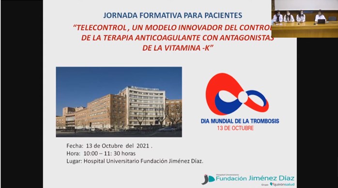 - Los hospitales universitarios Fundación Jiménez Díaz (Madrid), Rey Juan Carlos (Móstoles), Infanta Elena (Valdemoro) y General de Villalba (Collado Villalba) organizan unas jornadas dirigidas a los pacientes anticoagulados que están en el programa de telecontrol