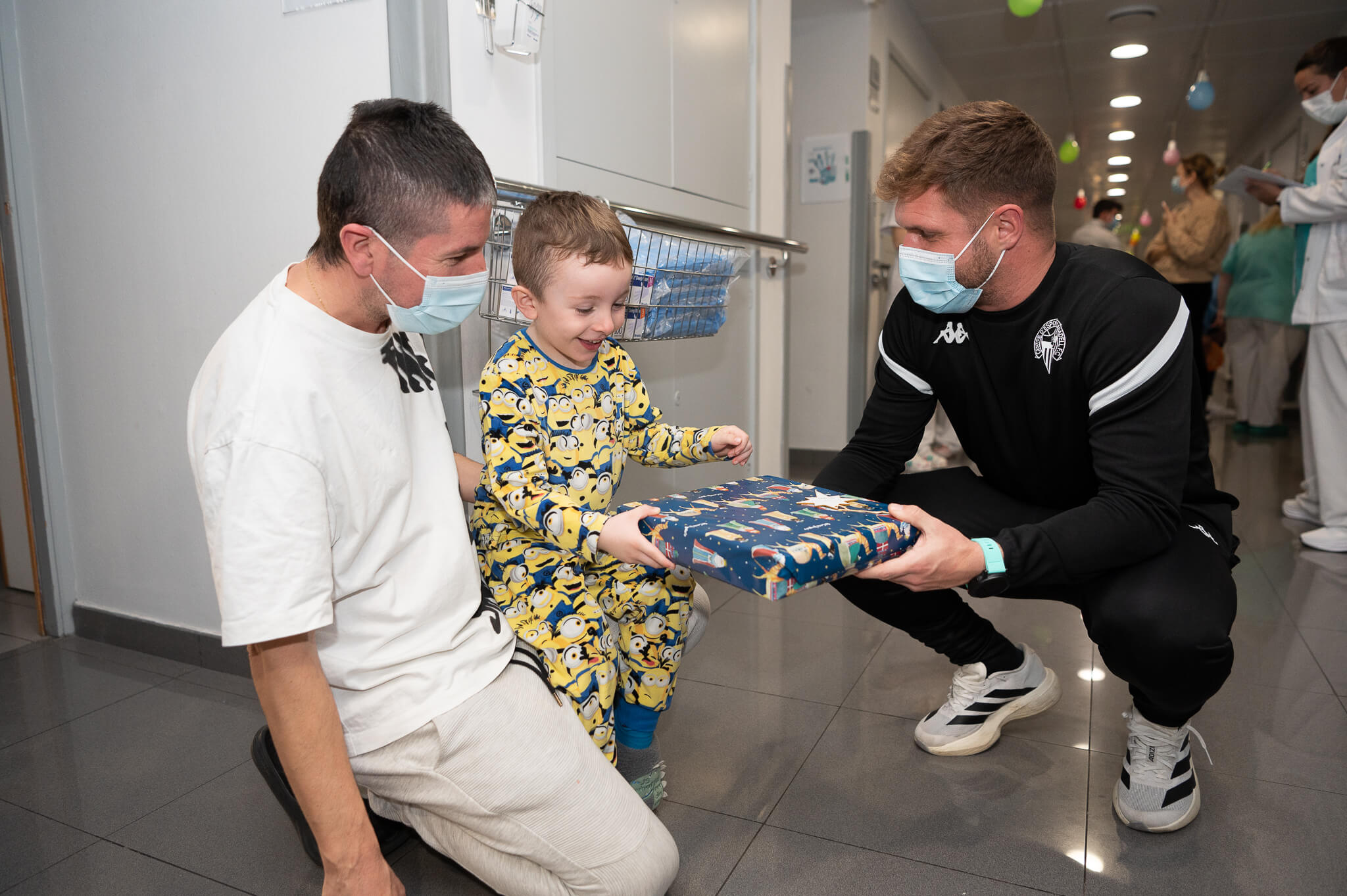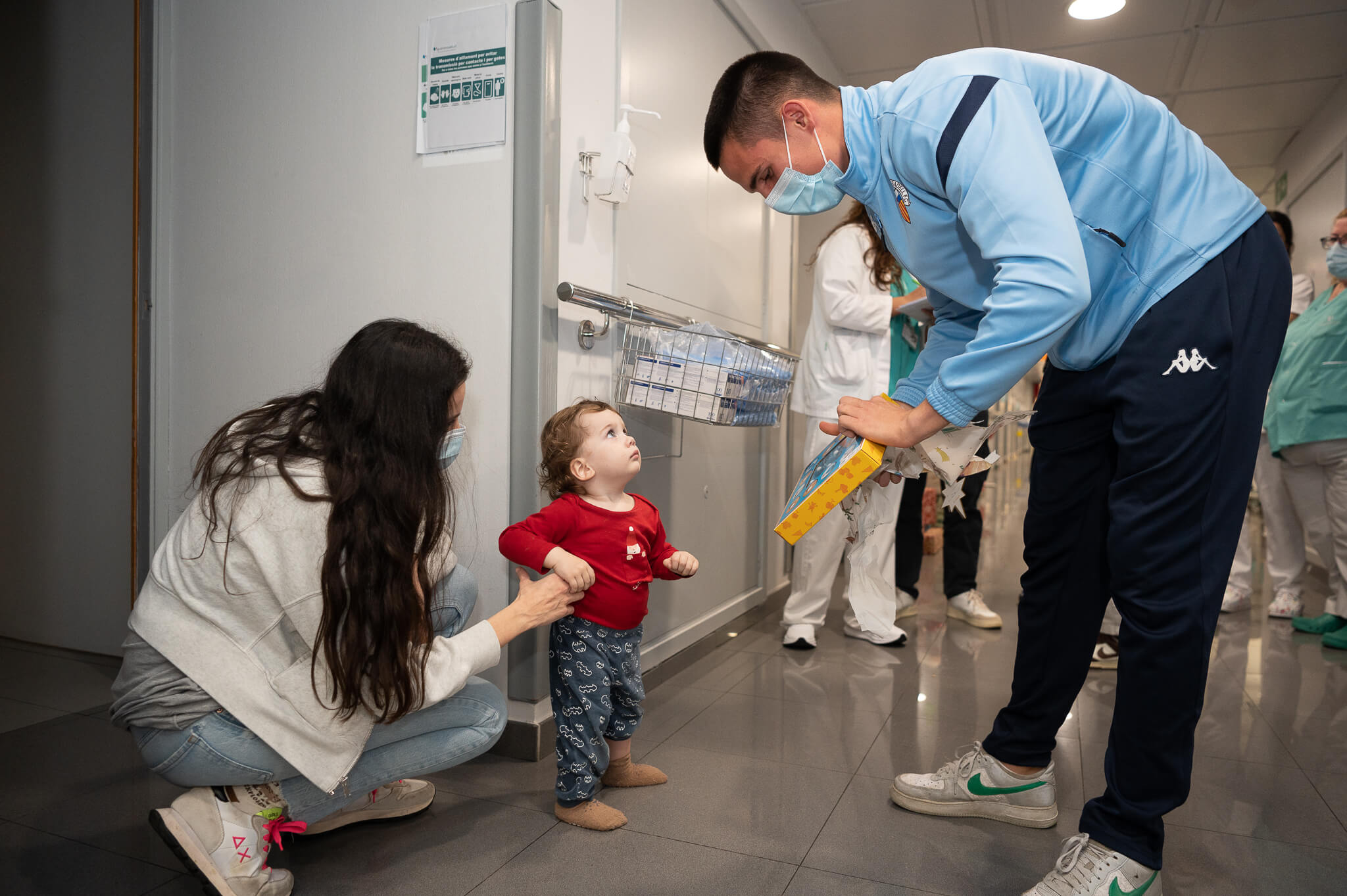 Convertidos en auténticos "embajadores reales", los futbolistas recorrieron las habitaciones pediátricas entregando obsequios cedidos por El Corte Inglés dentro de las campañas solidarias "Nadales Solidaris" y "Un niño, una sonrisa". Cada regalo llegó acompañado de palabras de ánimo, y fotografías que se convirtieron en momentos de complicidad, y lograron transformar la rutina hospitalaria en una mañana llena de emoción y espíritu navideño.
