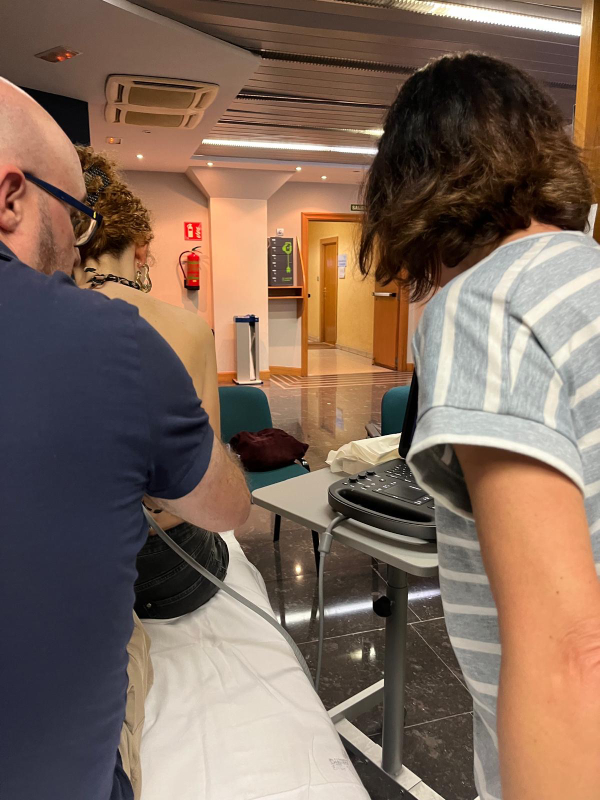 Durante las dos jornadas formativas, los profesionales pudieron profundizar en el manejo práctico de la ecografía a pie de cama (Point-of-Care Ultrasound, POCUS), una técnica que permite valorar de forma rápida y segura diferentes patologías sin necesidad de desplazar al paciente, mejorando así la calidad asistencial y la toma de decisiones en el entorno de urgencias.