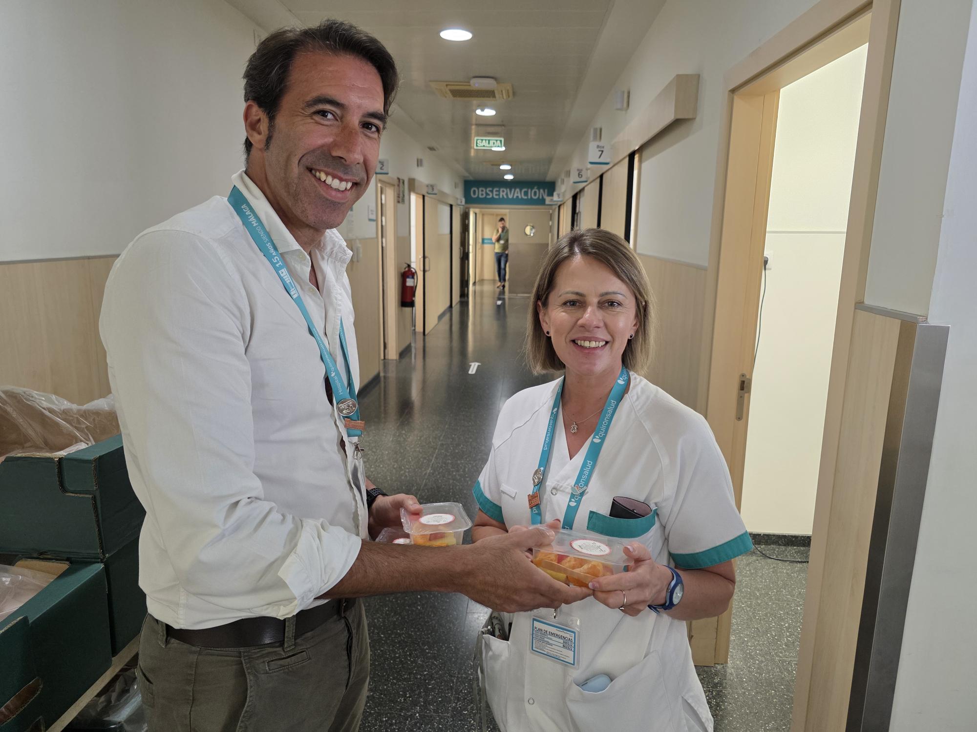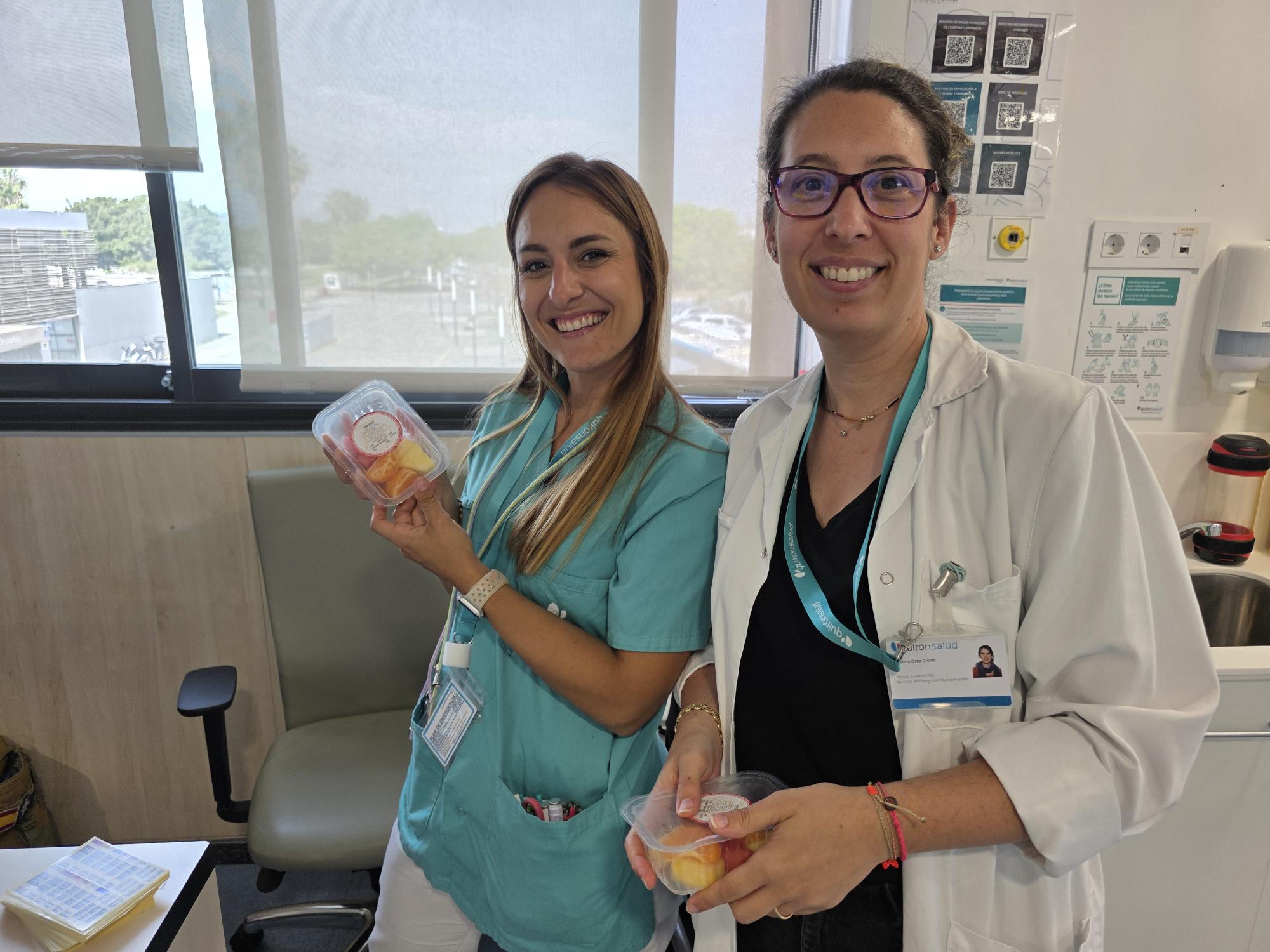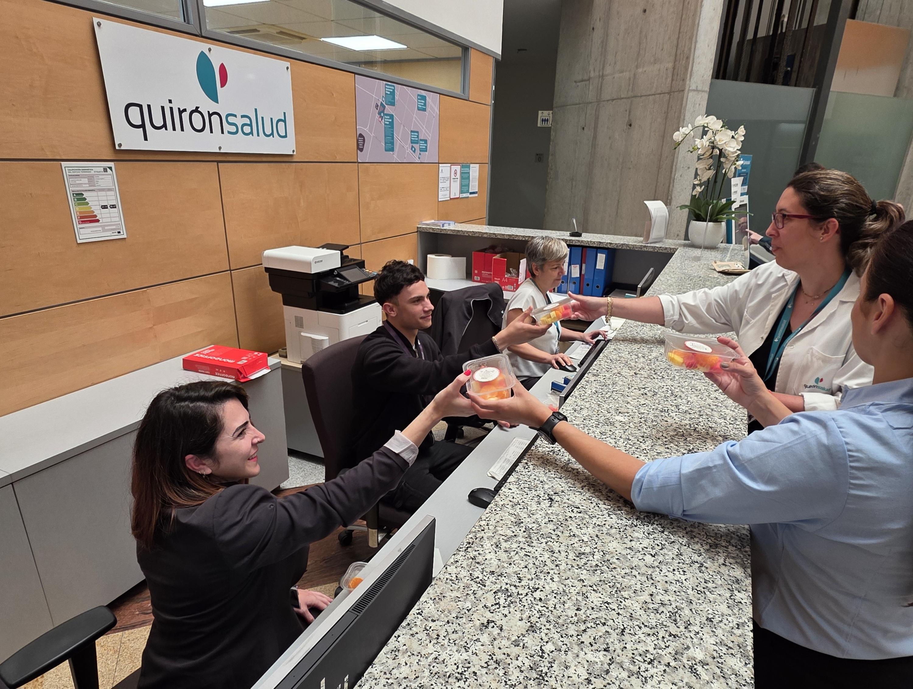 Con motivo del Día Mundial de la Seguridad y la Salud en el Trabajo, el Hospital Quironsalud Málaga, por iniciativa del equipo de Personas y Prevención de Riesgos Laborales, reparte fruta fresca entre los compañeros para fomentar hábitos saludables y poner en valor la importancia del bienestar en el entorno laboral.