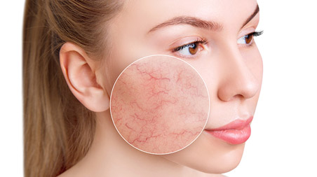 - Persistent redness, especially in the central area of the face (cheeks, nose, forehead, chin).