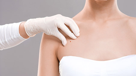- Intradermal nevi: raised flesh-coloured or light brown moles, usually round in appearance.